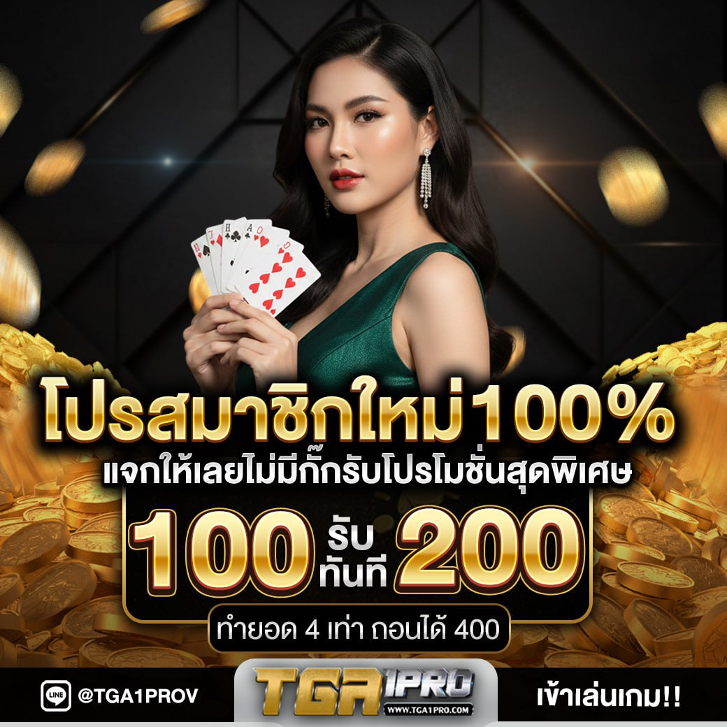เงื่อนไข : 100 รับ 200 ทำยอด 800 บาท ถอนได้ 400 (เฉพาะสล็อตเท่านั้น)
